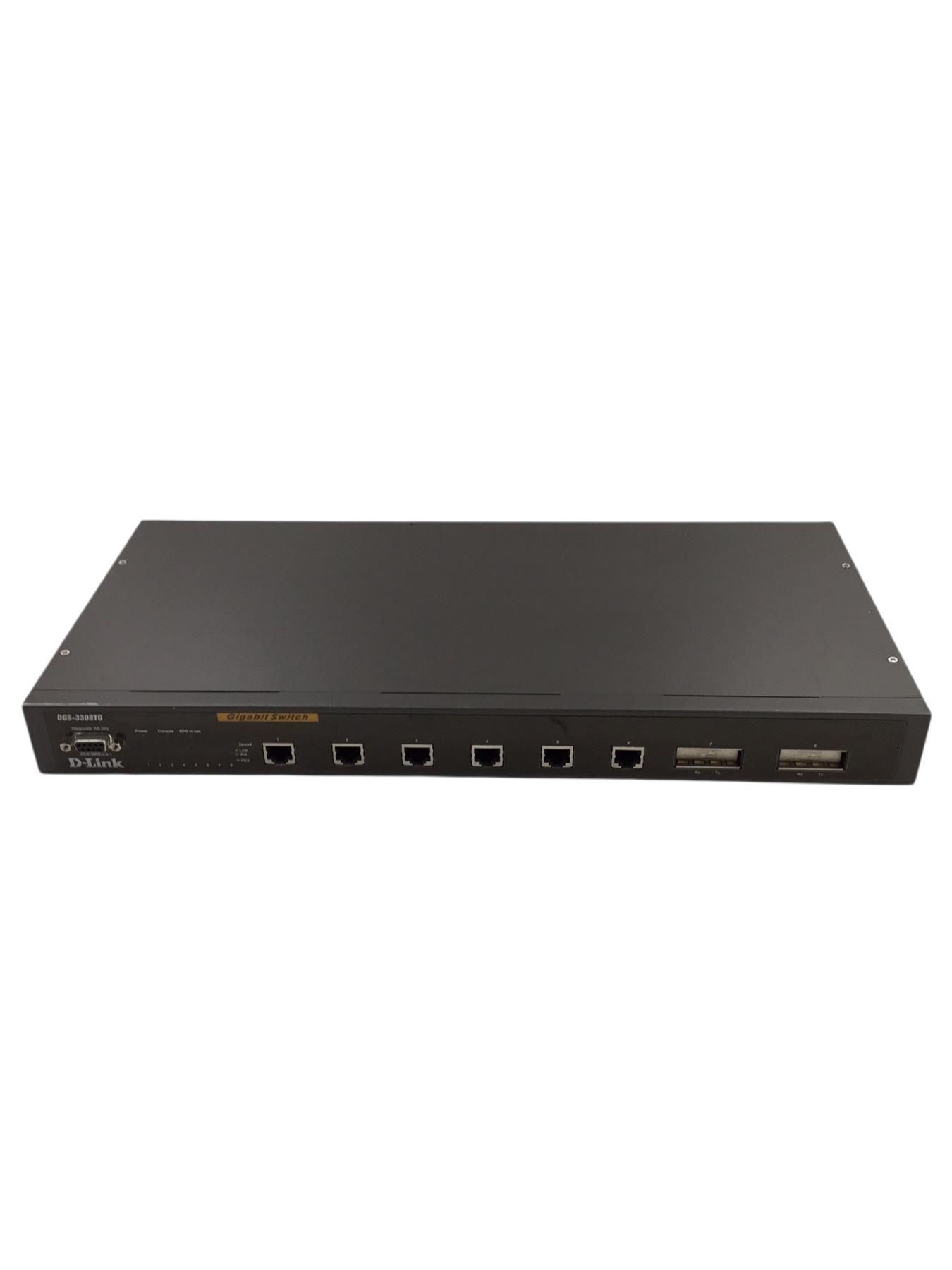 D-Link's DGS-3308TG is a high performance managed Layer 3 Gigabit switch that provides an ideal solution for Enterprise Gigabit applications. With (6) 10/100/1000BASE-T Gigabit Ethernet ports and (2) Open GBIC-Based ports, the DGS-3308TG is designed to meet the needs of the most demanding departmental and enterprise connectivity applications.