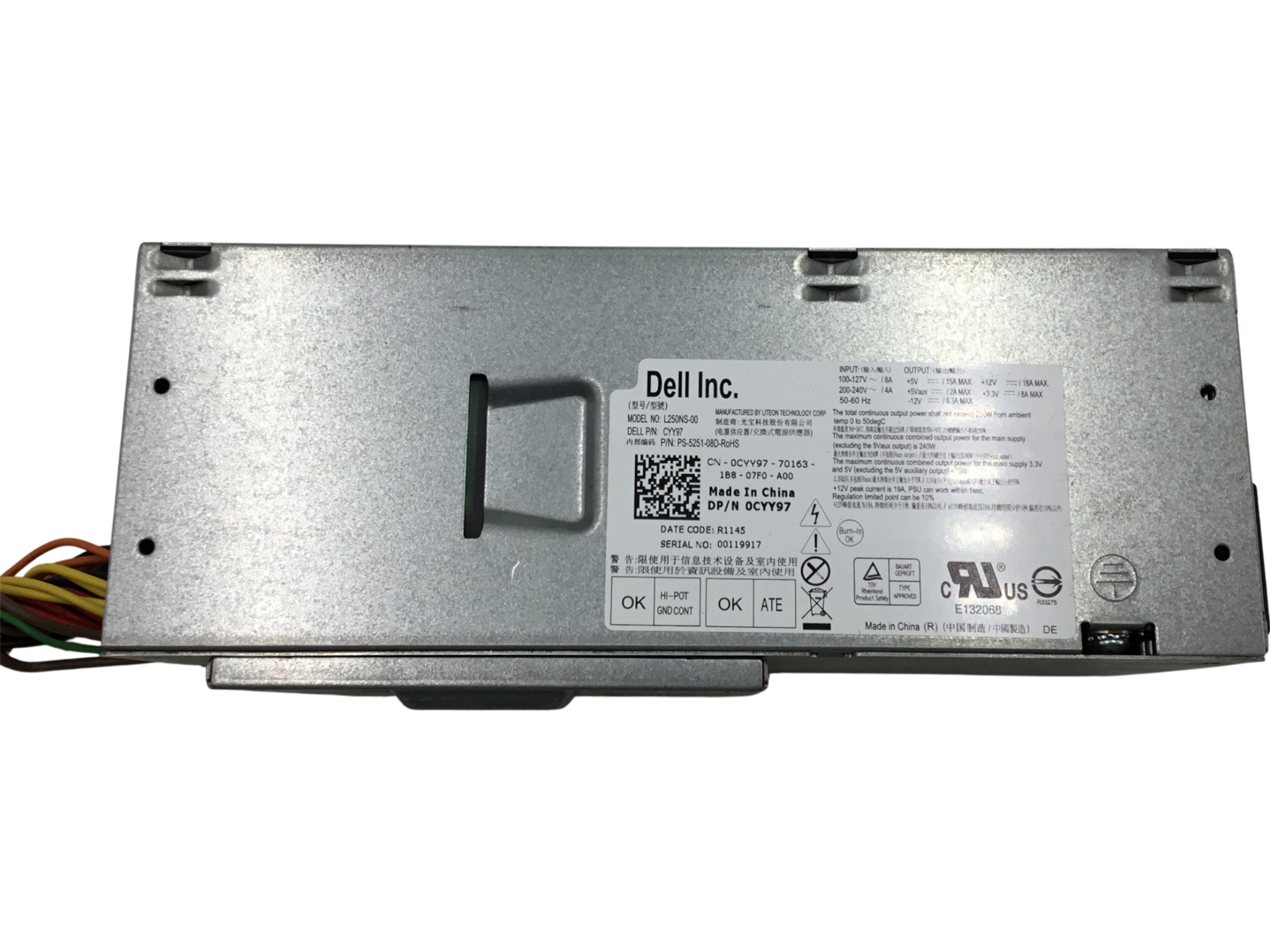 Short_Description : Dell L250NS-00 250W Power Supply Unit PSU CYY97 PS-5251-08D -Tested